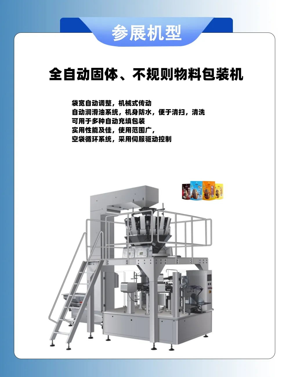 四邊封液體包裝機(jī) | 高速給袋式包裝機(jī) | 酵素果凍提取液體包裝機(jī) | 全自動辣椒醬包裝機(jī) | 全自動洗衣液包裝機(jī) | 全自動液體包裝機(jī)| 火鍋底料灌裝機(jī)| 灌裝機(jī)|
